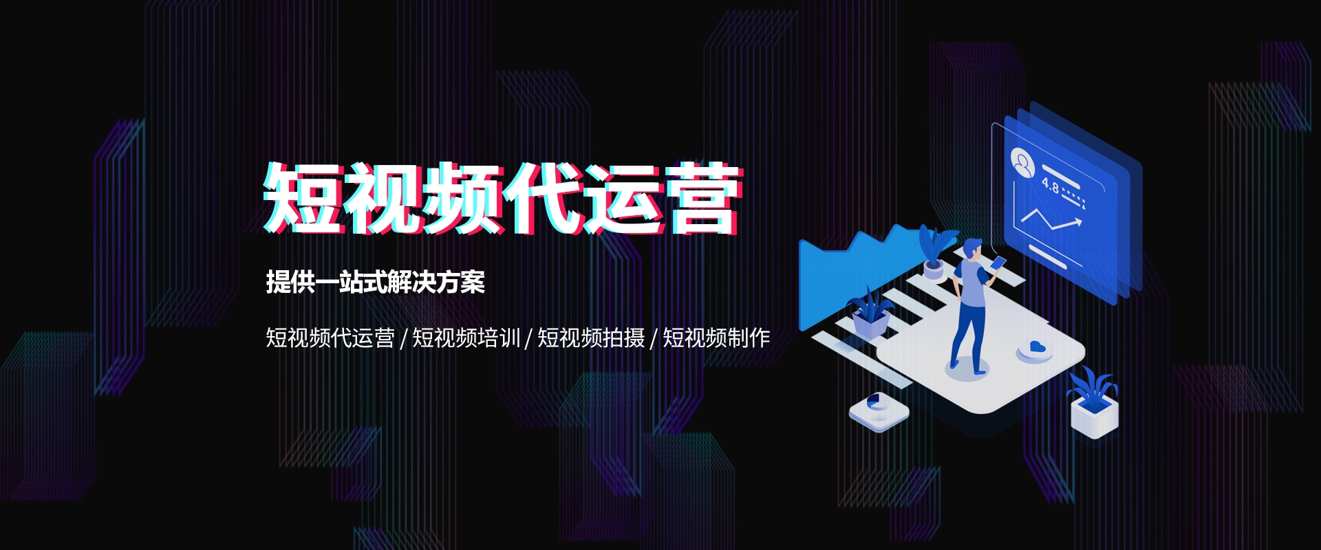 強大短視視頻營銷系統,視頻拍攝、視頻剪輯、視頻推廣、賬號運營,完整的視頻營銷解決方案,幫助企業搞定短視頻……